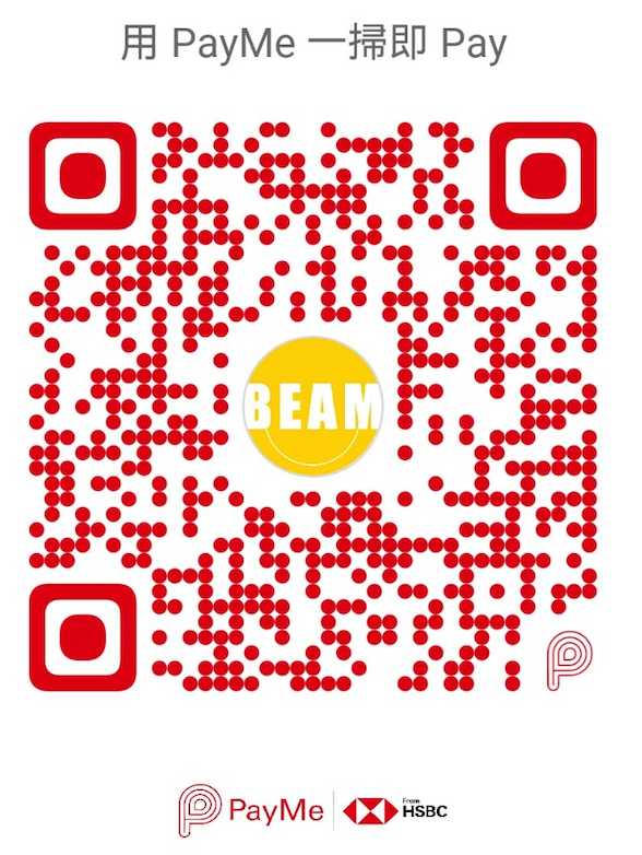 Donations of HK$100 or above are tax-deductible. For official receipt, please mail back original copy of proof of donation, together with your name, address and contact number to Beam at 19/F, On Loong Commercial Building, 276-278 Lockhart Road, Wan Chai, Hong Kong. Thank You.